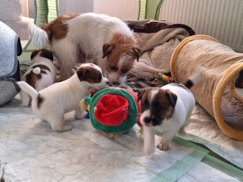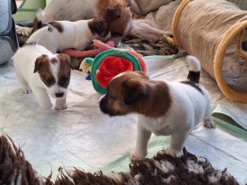 Ein wichtiger Bestandteil ihrer Entwicklung ist das Spielen – und davon gibt es reichlich! Die Welpen bekommen regelmäßig neues Spielzeug angeboten, lernen Tunnel kennen und werden immer wieder vor neue Herausforderungen gestellt. Diese vielseitigen Eindrücke fördern ihre Neugier und ihr Selbstbewusstsein.
