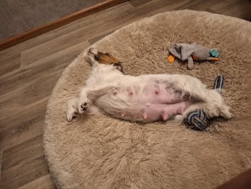 Yameela hat ihre Welpen am 31.08.25 bekommen, es war wie beim ersten Wurf ihr 59. Trächtigkeitstag. Sie hat alles super gemeistert und selbstständig gemacht.