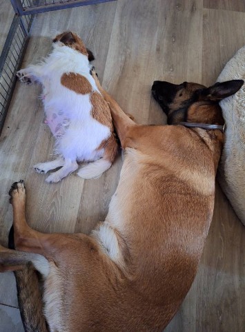Unsere Welpen wachsen inmitten eines harmonischen Hausrudels auf. Sie kennen bereits alle Hunde im Haushalt und profitieren besonders vom Umgang mit unserer großen Malinois-Hündin. Es ist immer wieder schön zu beobachten, wie sie geduldig mit den Kleinen spielt und ihnen wichtige soziale Kompetenzen vermittelt. Für die Welpen ist es ein Highlight, wenn die „Große“ sich Zeit für sie nimmt und sich mit ihnen beschäftigt.