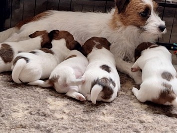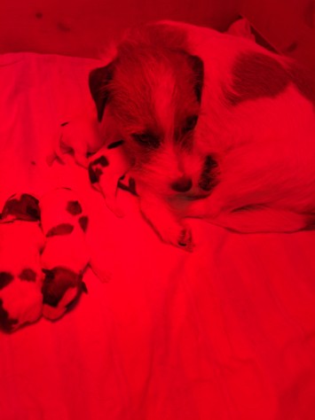 Es sind 1 Rüde und 4 Hündinnen, Mutter und Welpen sind wohlauf.