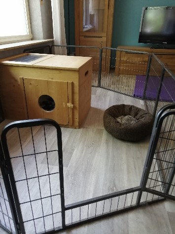 Hier ist alles Vorbereitet für die kleinen Akrobaten. Nicla nimmt gut zu, sie hatte am 01.08 einen Umfang von 52 cm und Gestern Tag 49 war sie schon auf 56 cm angewachsen.