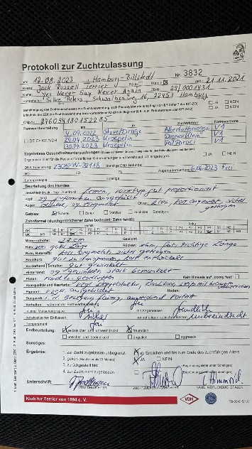 12.08.23 | Hamburg | Zwischenklasse und Zuchtzulassung | Deipenbruck | V1, CAC VDH/ KfT. BOS | |
