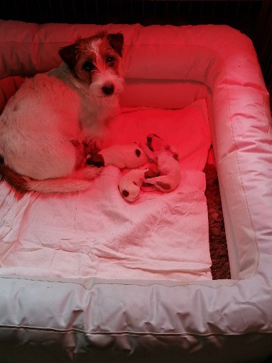 Nicla hat ihre Welpen bekommen und sie hat es Cleo nachgemacht. Zwei Rüden und eine Hündin.